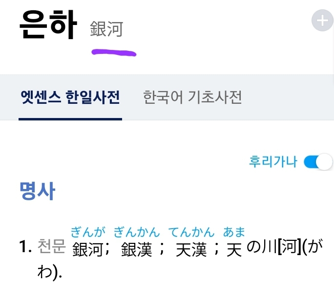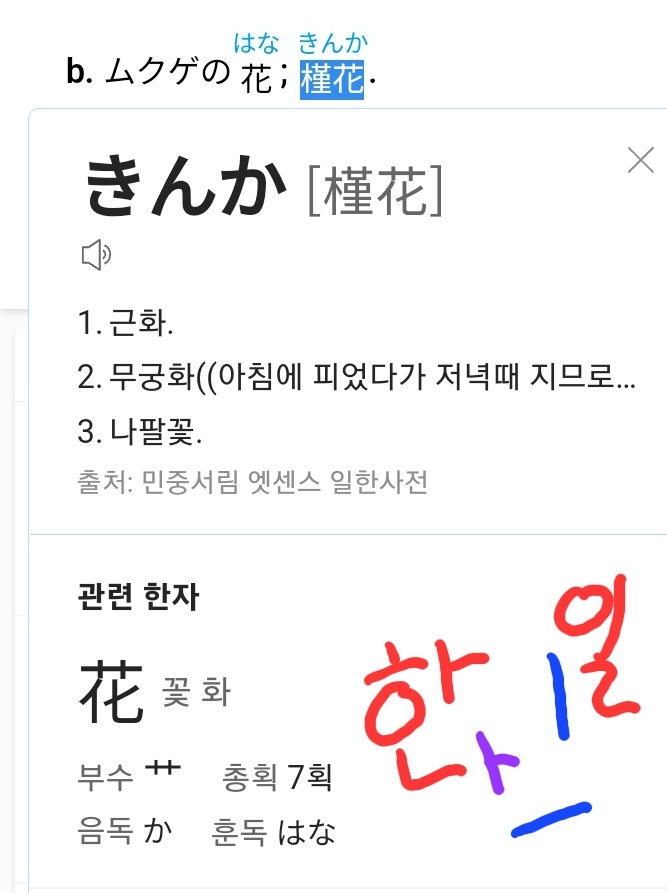 은하 銀河き”んか”에서 탁한 점을 빼면 무궁화가 됩니다.