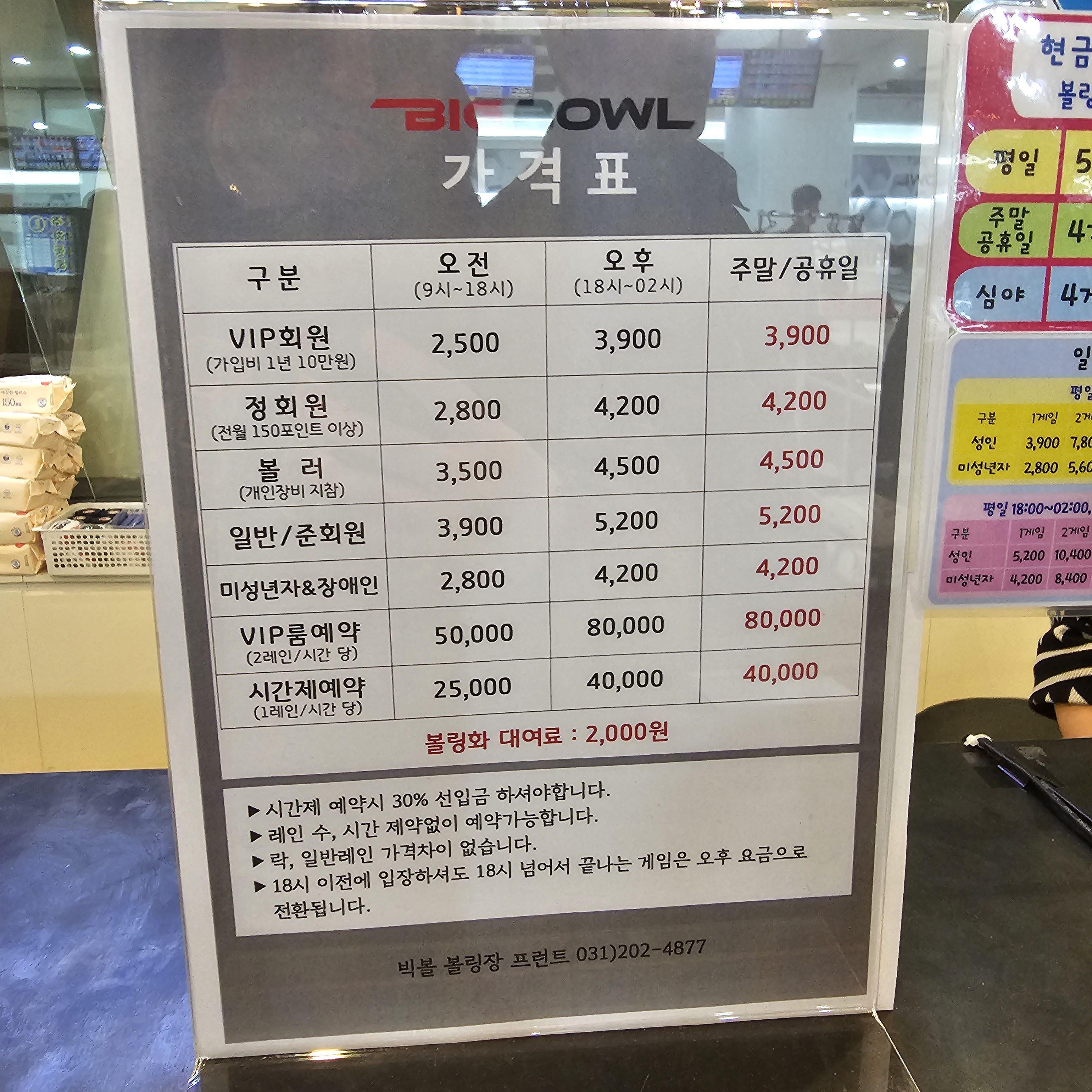 같은 돈을 내면 빅볼 볼링장에 들어갈 수 있을 것 같다.