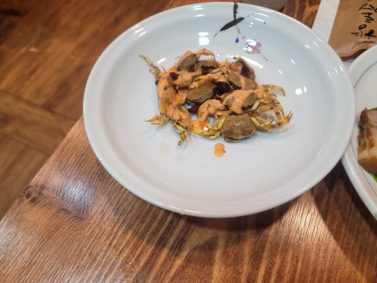그리고 간장을 곁들인 잘 손질된 게도 함께 제공됩니다! ! !