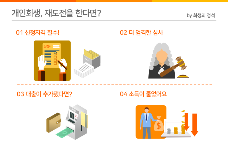 채무자는 법정대리인의 도움 없이 혼자 수속을 밟을 수 있다고 한다. 시작하기 위해 도우미가 동반해야하는 쇼가 아니라고 그는 말했다. 하지만 서포터즈와의 만남을 거듭 제안한 이유는 실제 운영 과정에서 마주하는 힘든 순간이 많기 때문이라고 말했다. 재활에는 조건이 하나가 아니라 여러 개 있고 모든 조건을 충족해야 지원이 가능하기 때문에 자격 여부를 판단하기가 쉽지 않다고 했다. 사실 개인회생 재신청부터 시작해서 높은 장애물에 막혀 허둥지둥하기도 하고, 지름길도 보지 못하고 먼 길을 우회하기도 합니다.