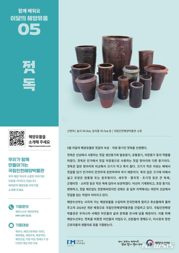 2023년 5월 이달의 해양유물로 젓갈 숙성 보존용기인 젓갈이 선정되었습니다.